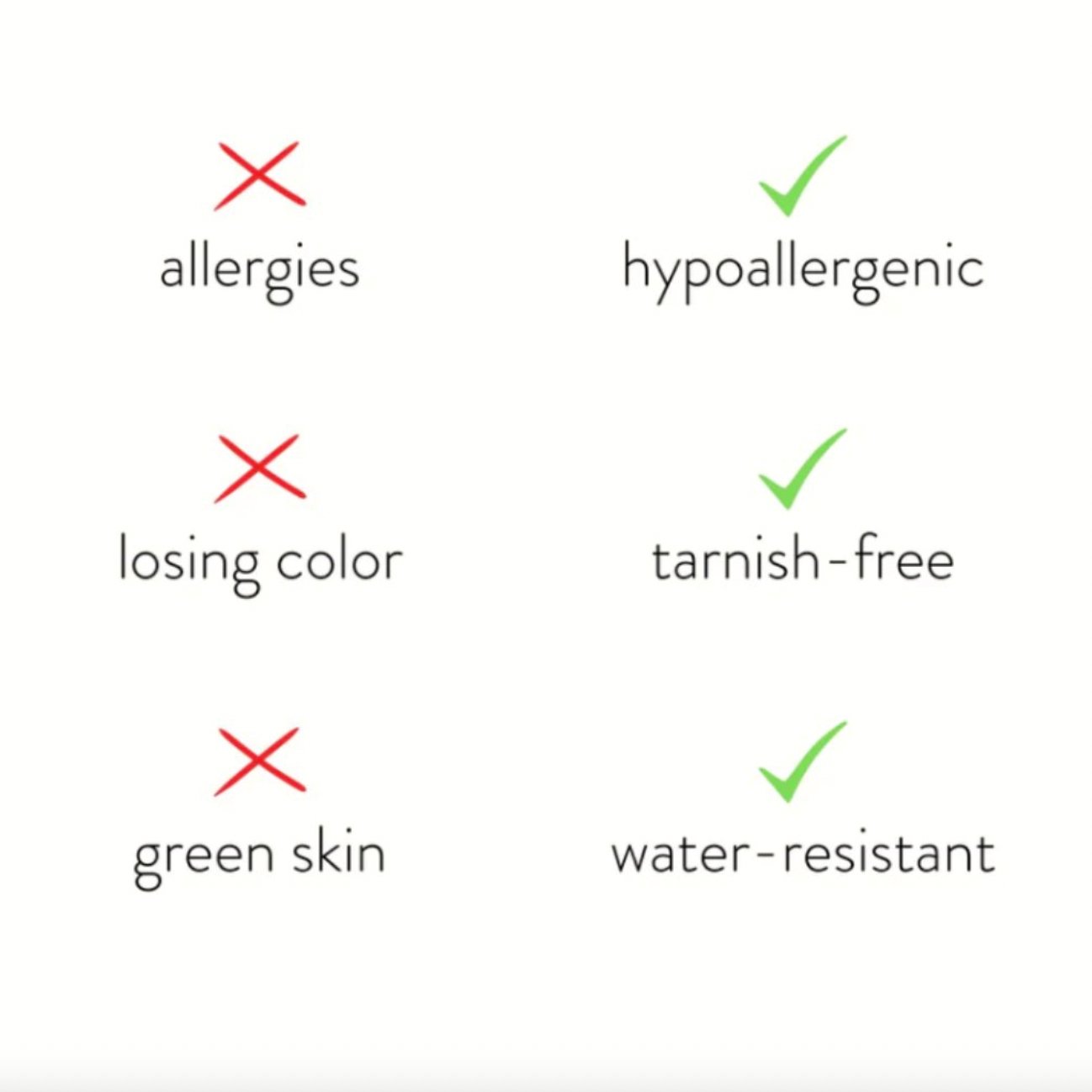 Realizzata in acciaio inossidabile impermeabile, non dovrai mai più preoccuparti che i tuoi gioielli sbiadiscano o si ossidino.