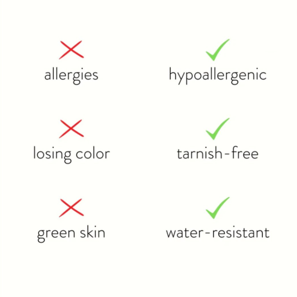 Realizzata in acciaio inossidabile impermeabile, non dovrai mai più preoccuparti che i tuoi gioielli sbiadiscano o si ossidino.